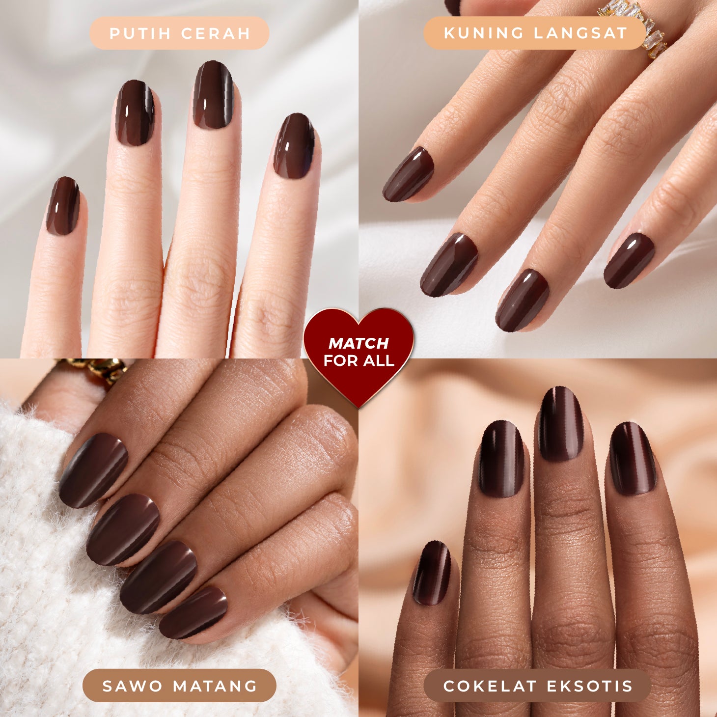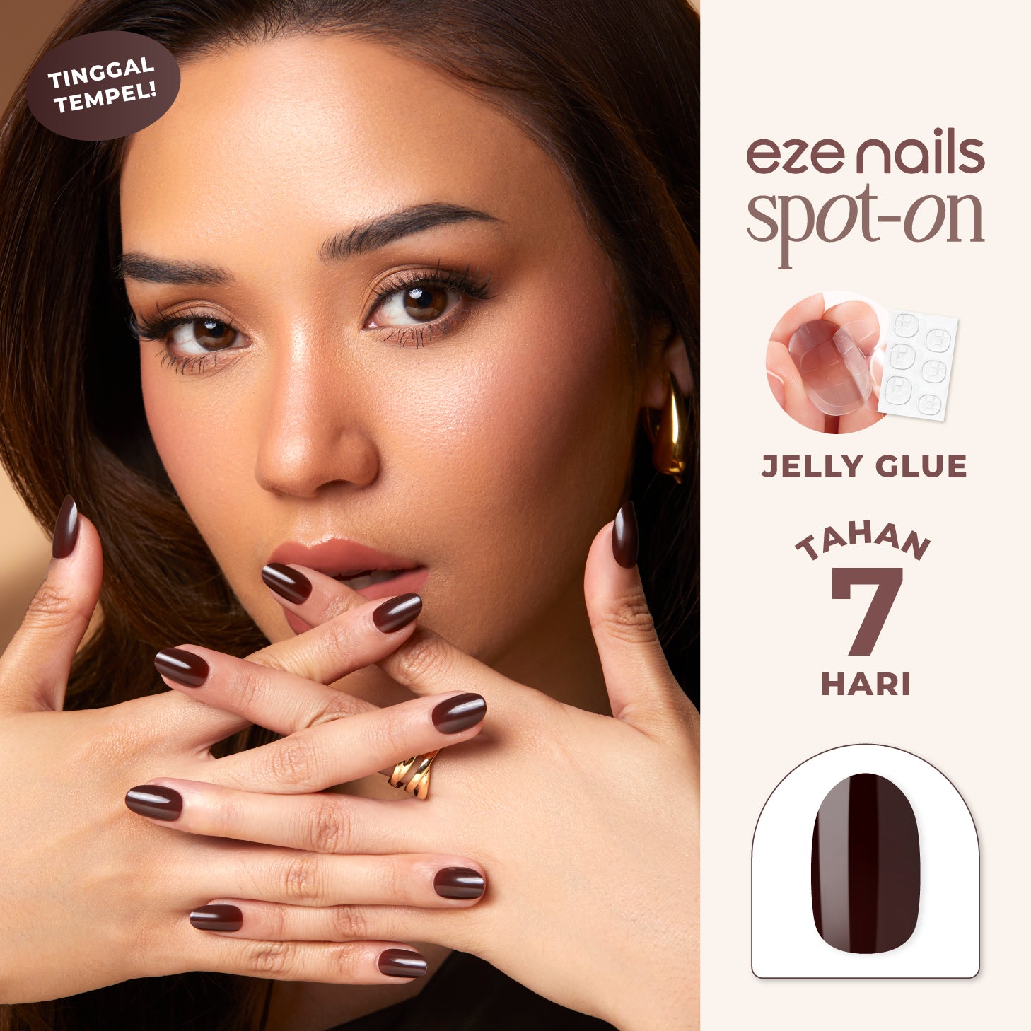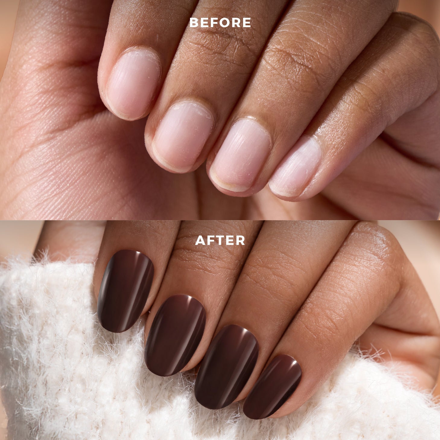 Solid classic brown Spot-on Manicure, with a gel salon-like shine.