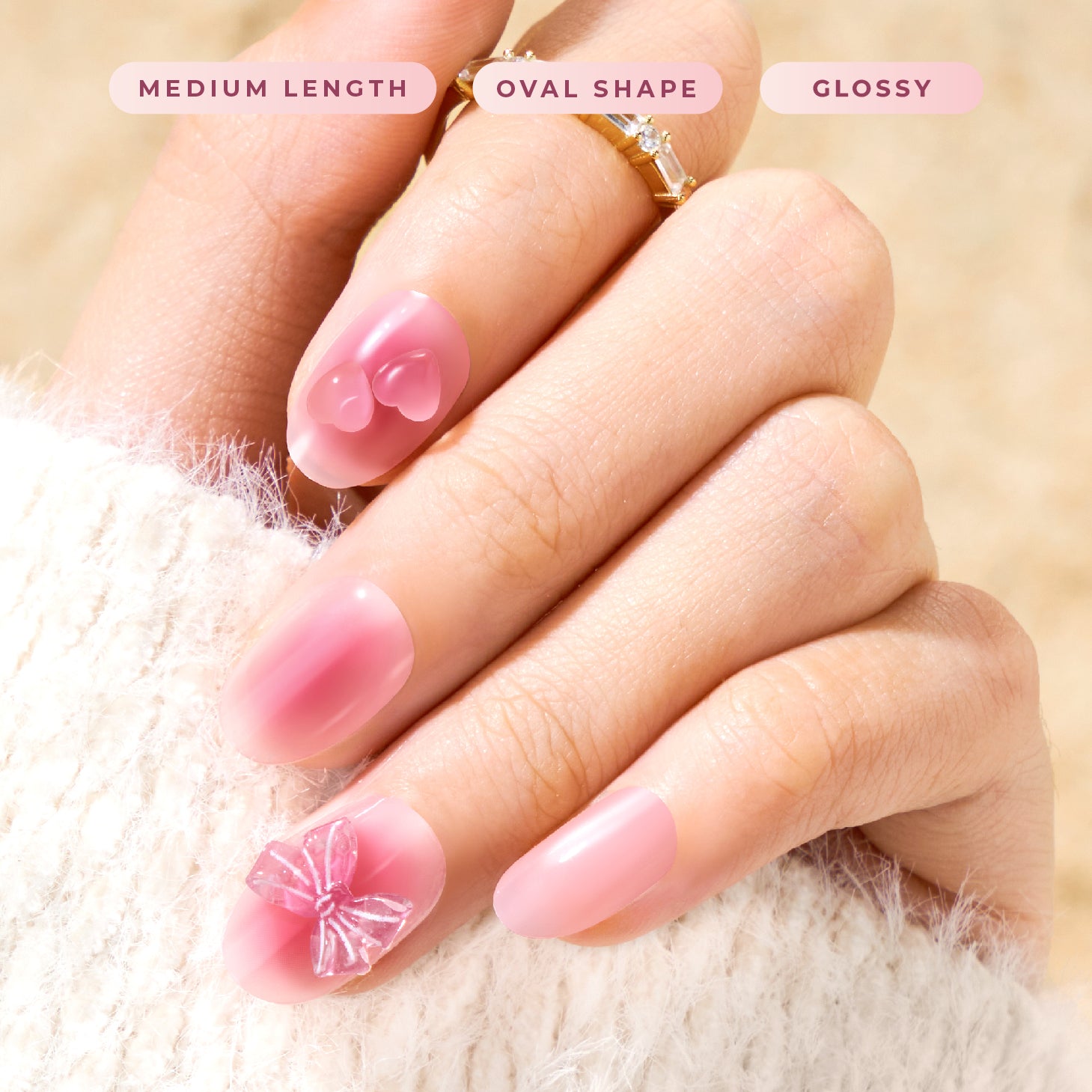 A flirty fusion of soft satin and 3D glam blush pink—perfect for sweet, standout moments.