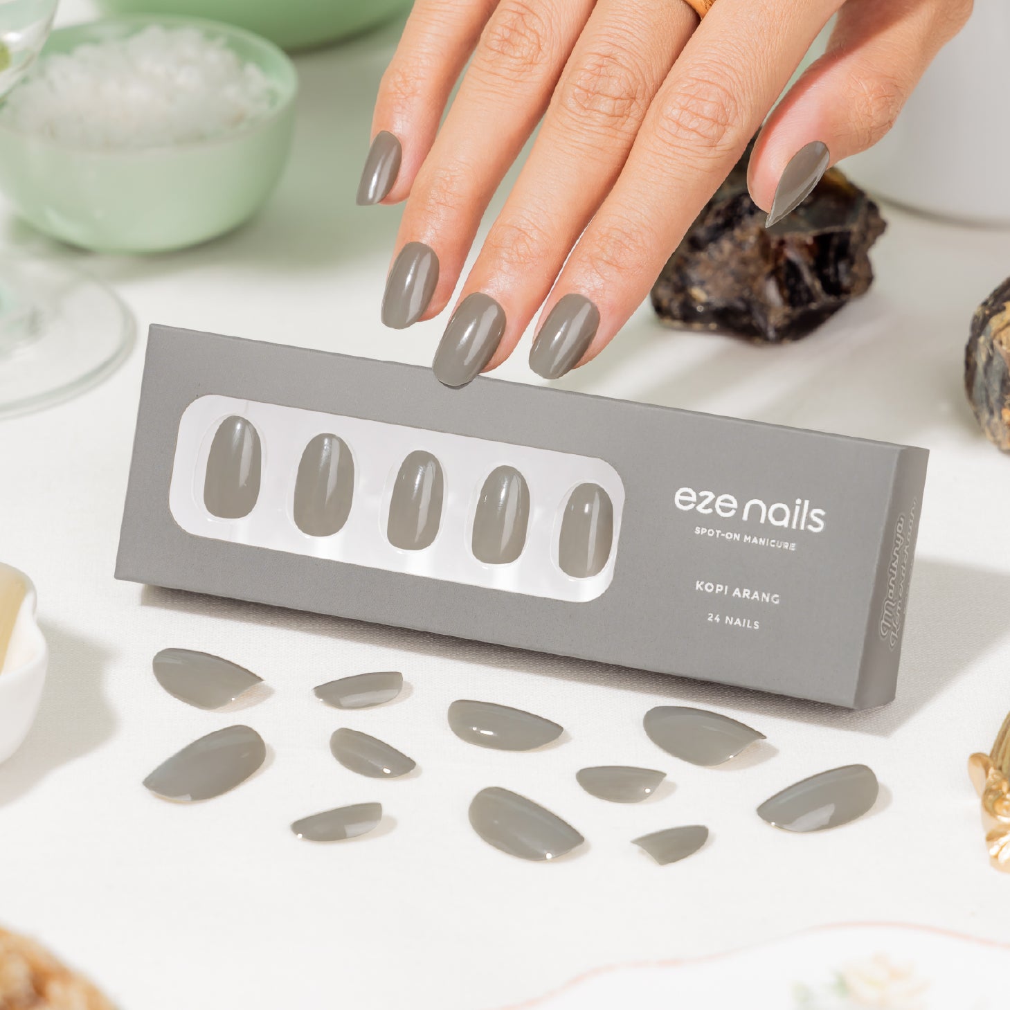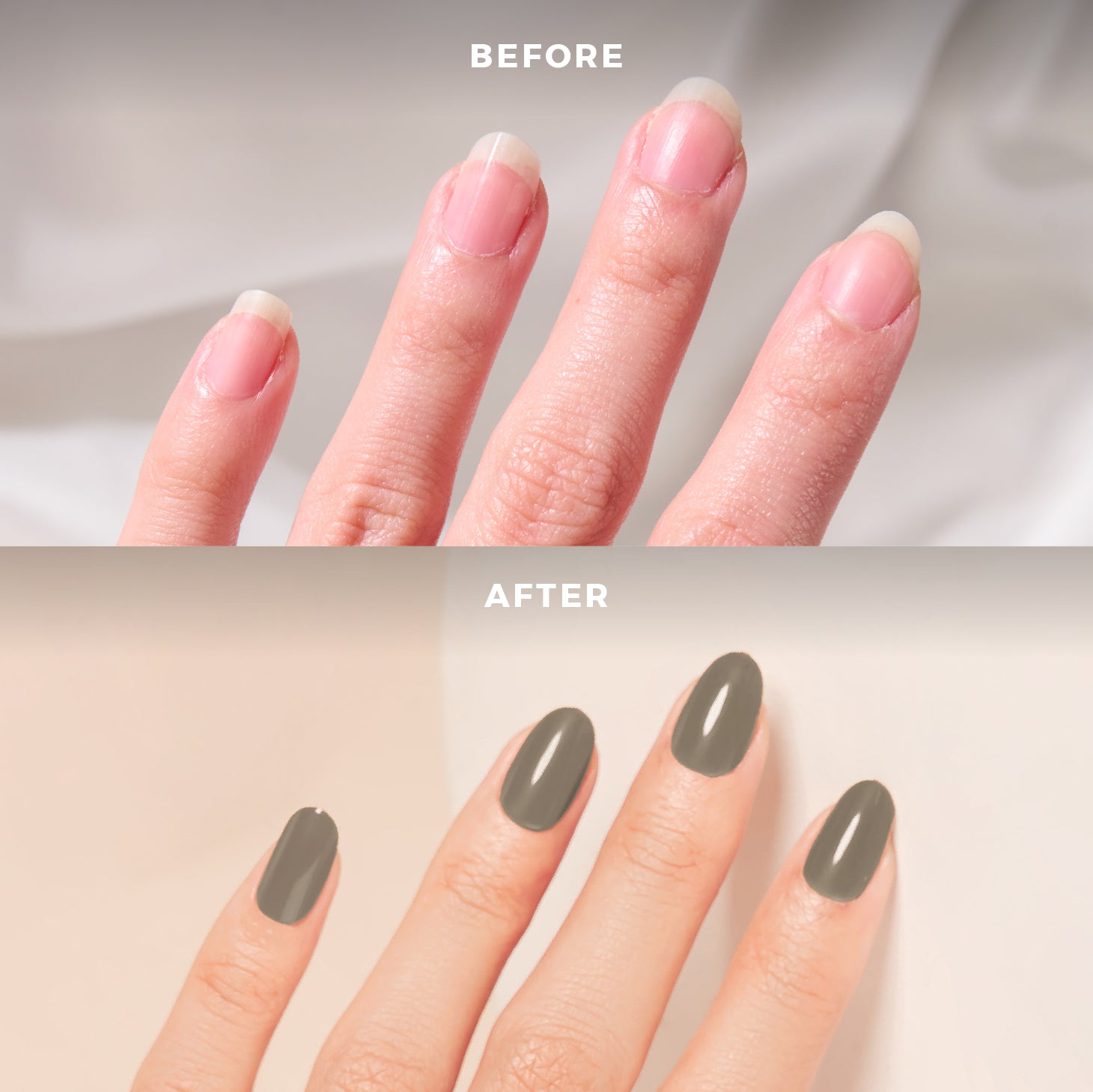 Solid ashy gray Spot-on Manicure, with a gel salon-like shine.