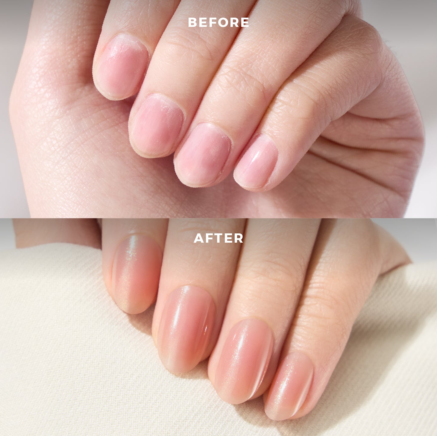 Gold glazed light peach blush Spot-on Manicure, with a gel salon-like shine.