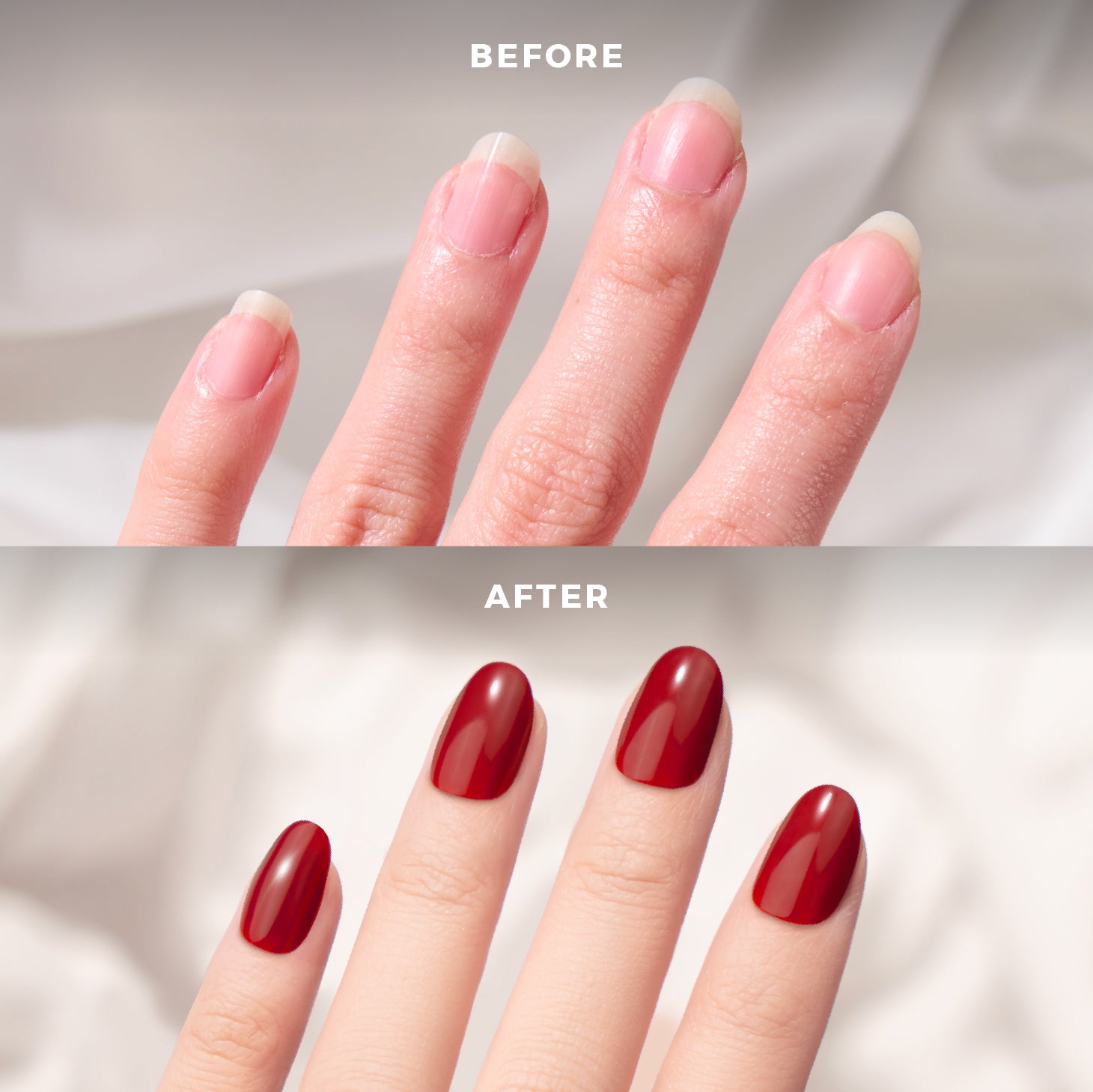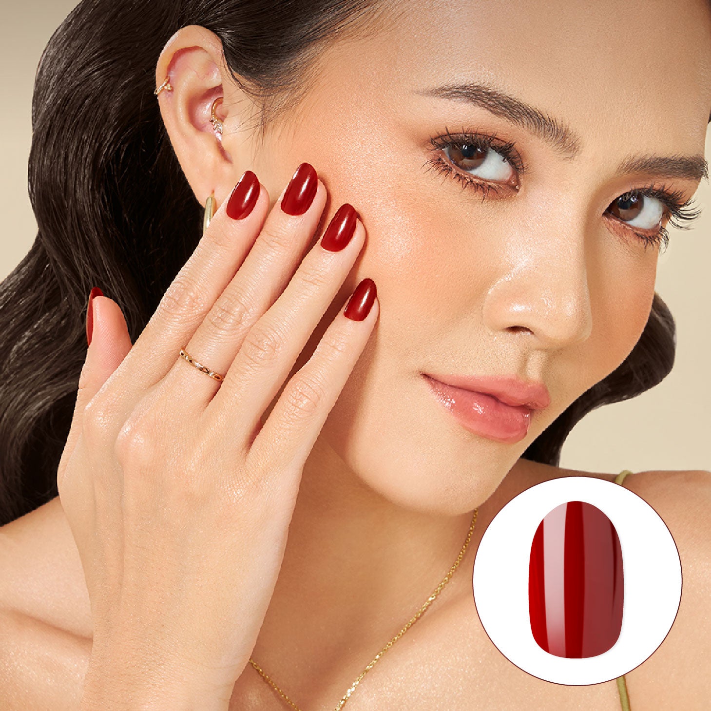 Solid classic red Spot-on Manicure, with a gel salon-like shine.
