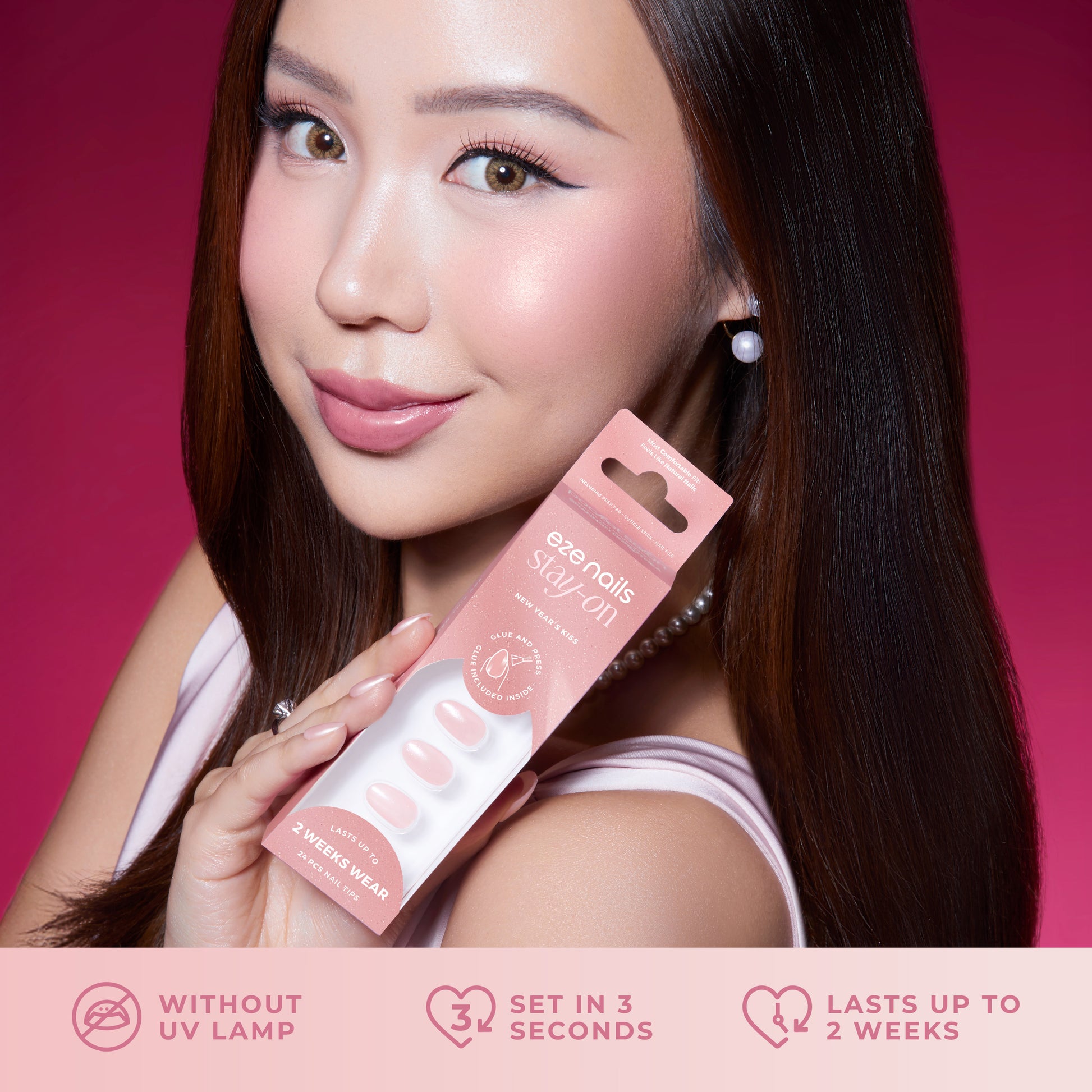 Eze Nails Stay-On Nails adalah kuku cantik dan tahan lama dengan hasil akhir seperti gel salon yang terbuat dari material super ringan, dan mampu bertahan hingga 2 minggu pemakaian, tanpa perlu ke salon atau menggunakan UV light.